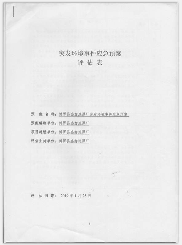 已制訂《博羅縣盛鑫洗漂廠環(huán)境風(fēng)險(xiǎn)評(píng)估報(bào)告》,并于2019年1月25日上報(bào)博羅縣環(huán)境保護(hù)局備案;