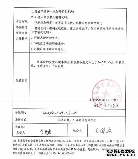 1、單位名稱: 汕頭市峽山廣業(yè)環(huán)保有限公司