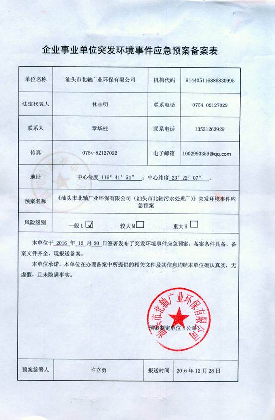 | 廢水 | WS-15001 | 總排放口(二氧化氯消毒池處理末端出水口) | 總砷 | ② | 每月一次委托 | |